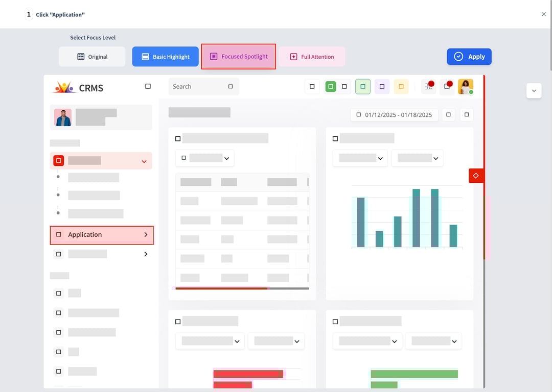 (5) Apply "Full Attention" to remove all input captions and text, leaving only the selected area highlighted while graying out the rest of the page.