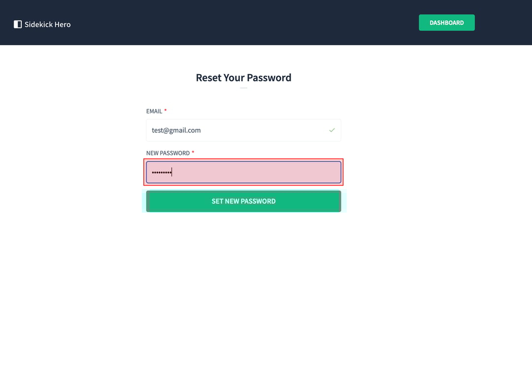 (6) After entering your new password, click the "Set New Password" button to complete the process. You can now use this new password to sign in to your Sidekick Hero account.