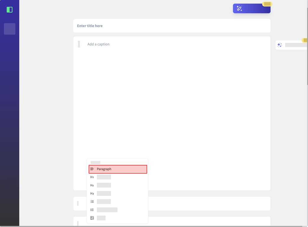 (3) A menu of block types will appear. Select "Paragraph" to add a new text block to your flow.