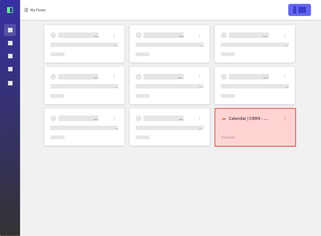 (1) From the "My Flows" page, locate and select the flow you wish to edit. Click on the flow card to open it for editing.