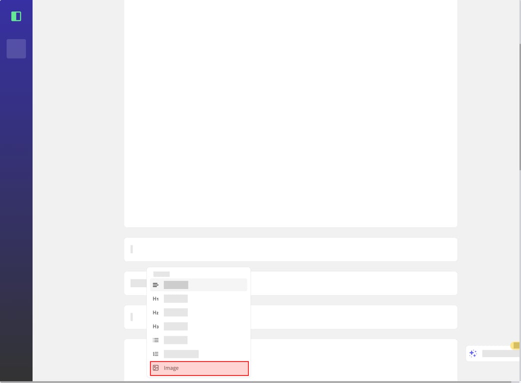 (5) If you want to add images to your flow, click the "+" button again and select "Image" from the block type menu. This will allow you to insert images into your flow alongside your text content.