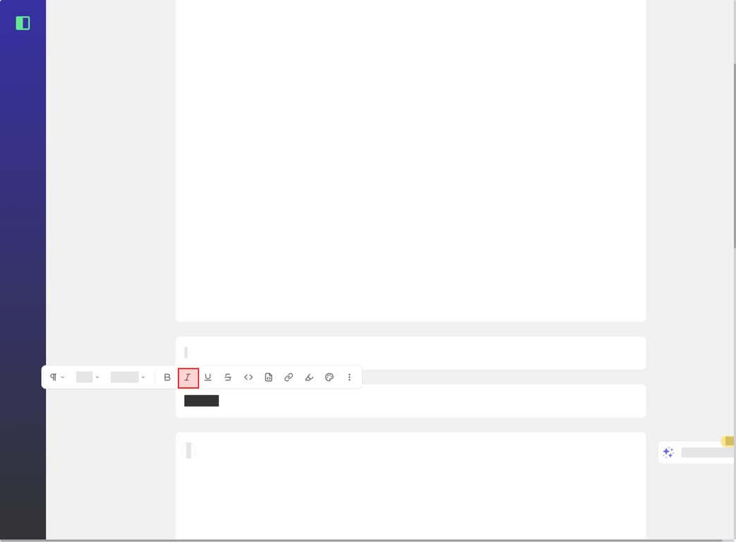(4) To format your text, select the portion you want to modify. A formatting toolbar will appear above the selected text. Choose the "Italic" option to change the text style to italics. You can also use this toolbar to add links, change colors, or adjust the font.