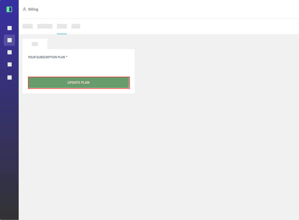 (3) On the Billing page, you'll see your current subscription plan. Click on the dropdown menu under "YOUR SUBSCRIPTION PLAN" and select the new plan from the available options.