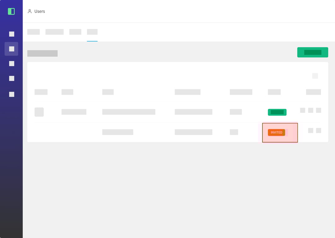 (7) The new user will now appear in your user list with an "INVITED" status, indicating that an invitation has been sent to their email address.